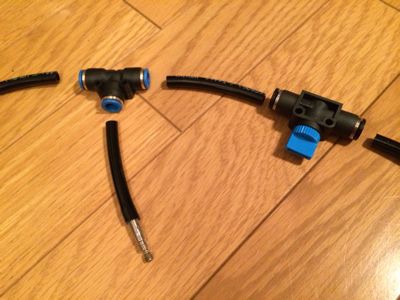 切断したフレンチバルブを片側のエアホースに取り付ければ完成。