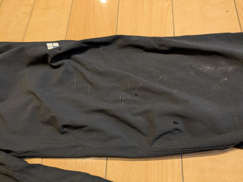 腿のあたりは何かが引っかかった後がある。確かイバラとかが刺さった記憶がうっすらある。