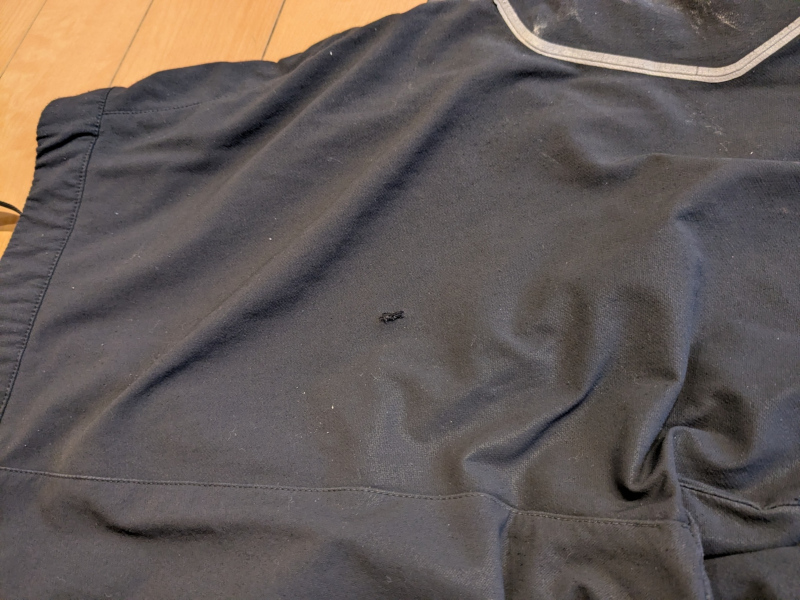 裾の後ろ側にも穴が開いている。これは最近気が付いた。何かが貫通したんだろうな。木の枝とか。