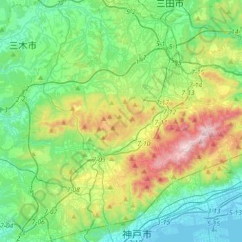 自転車乗り的に重要な標高は、北区全域がだいたい200m以上、最高地点の六甲山最高峰が931m。