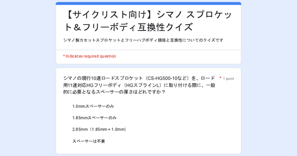 生成AIGeminiでカセットスプロケットとフリーボディ規格の互換性クイズを作ってみました(推敲を繰り返しました)。